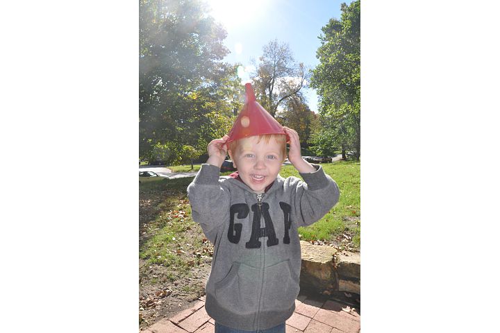 That afternoon we had some friends over for a birthday tailgate. It worked out really well since her birthday fell on game day. We smoked some meat and while we were working outside the boys made their own fun with their "new hats"